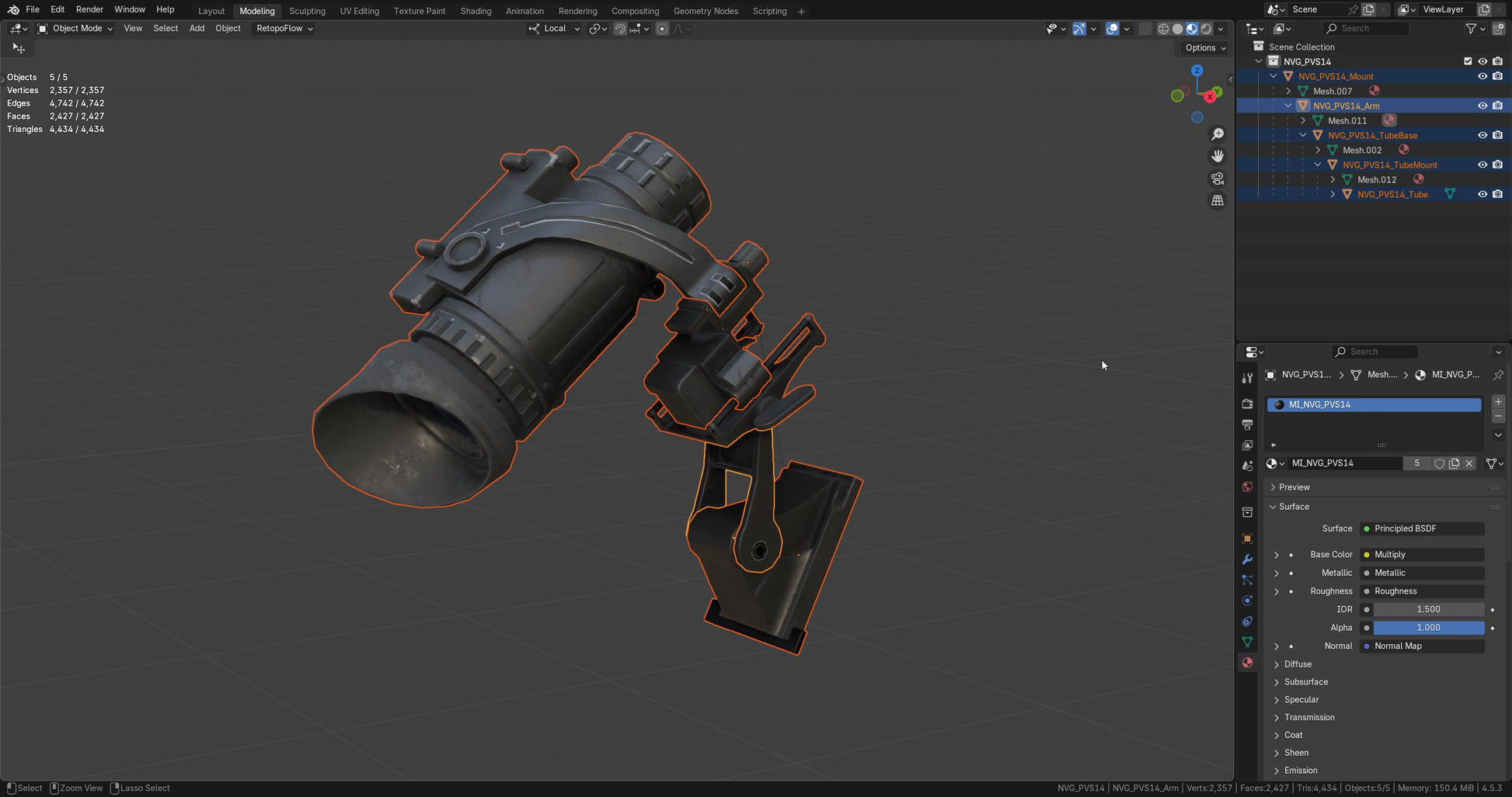 Game-Ready 3D Model loosely inspired by the AN/PVS-14 Monocular Night Viision Device (MNVD). Please keep in mind proportions and features might be different to the real counterpart.