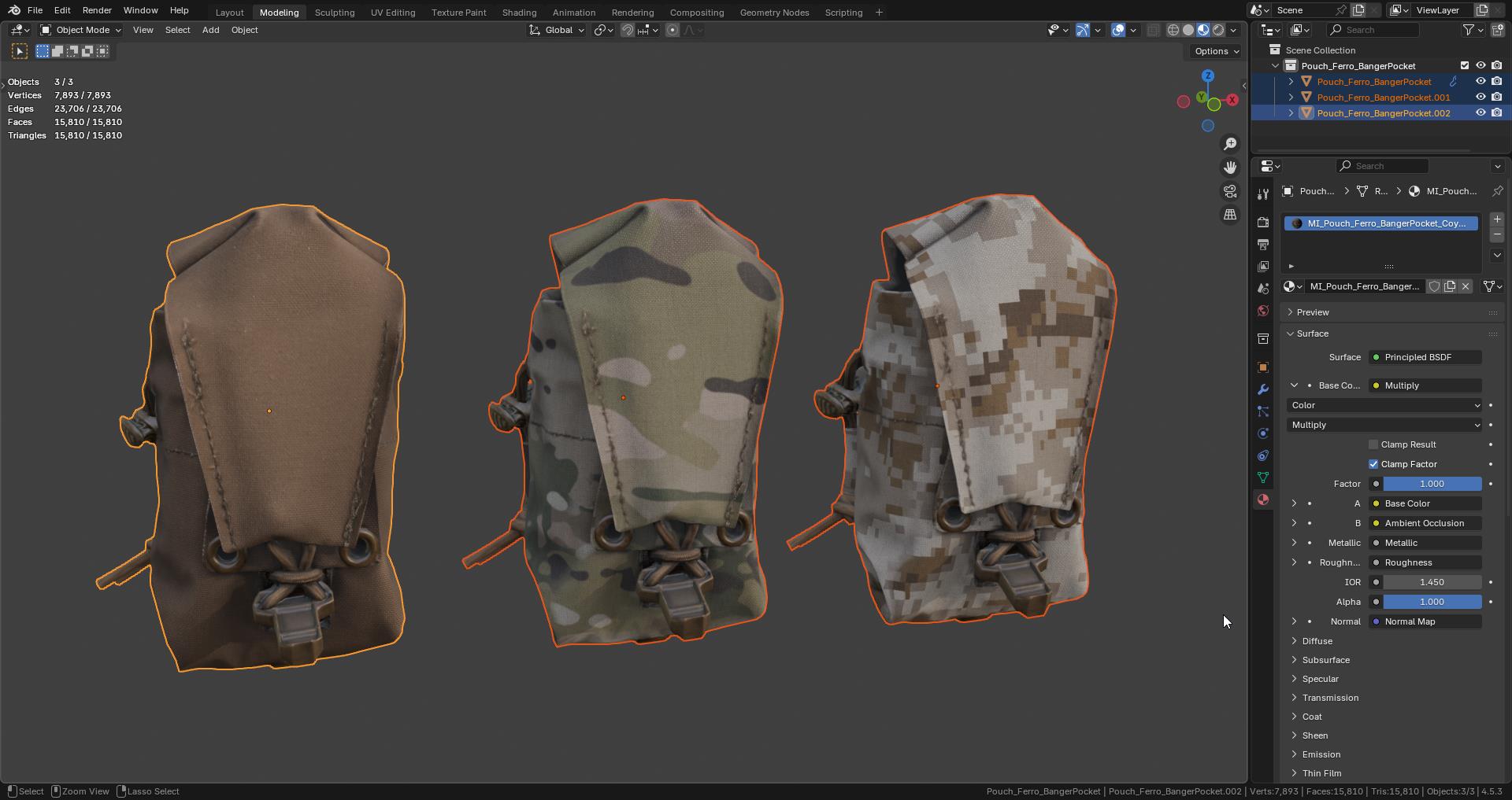 Game-Ready 3D Model inspired by the Ferro Concepts Banger Pocket grenade pouch. Ideal to add to you 3D character kits, plate carriers, belts etc.