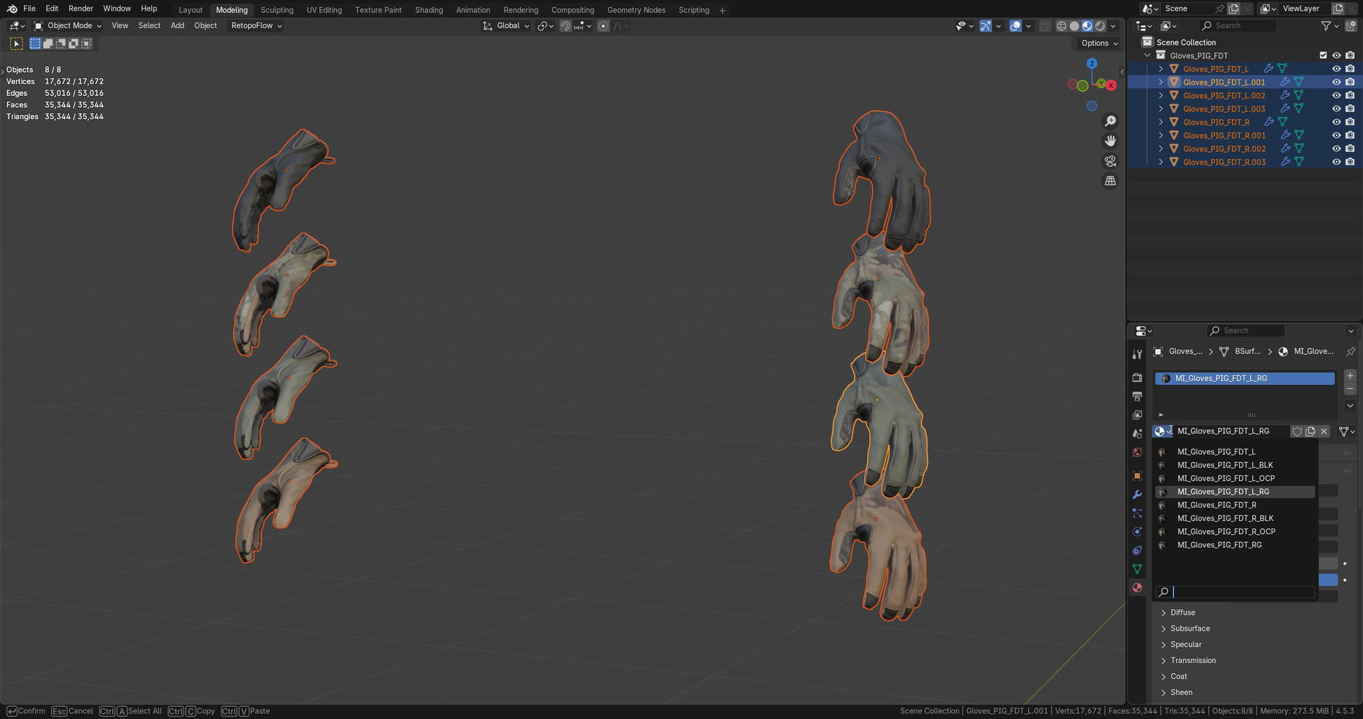 Game-Ready 3D Model inspired by the PIG FDT Delta Gloves. Coyote, Ranger Green, Black and OCP (Similar to Multicam) textures are included as well as a ID Mask for easy retexturing.