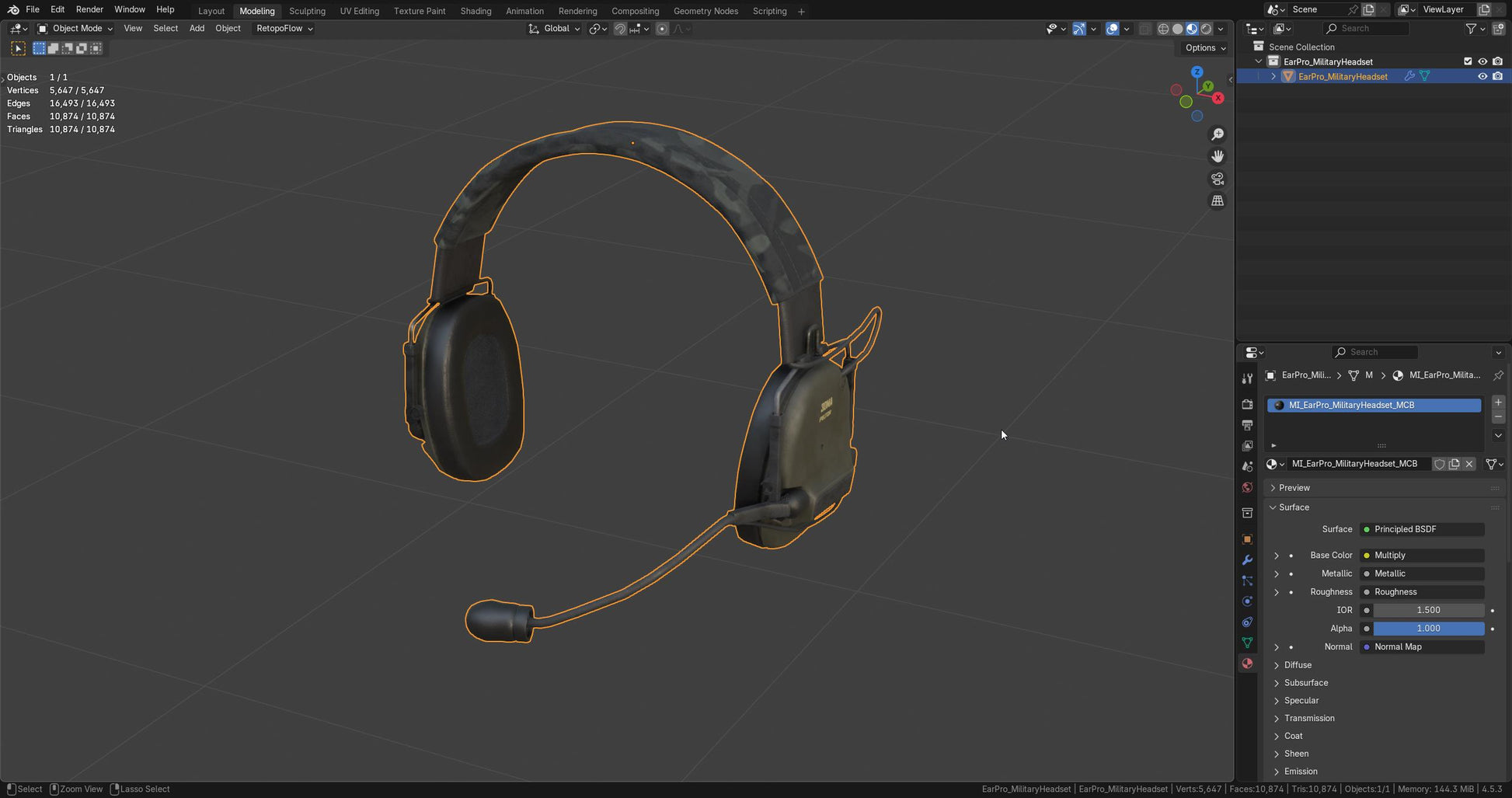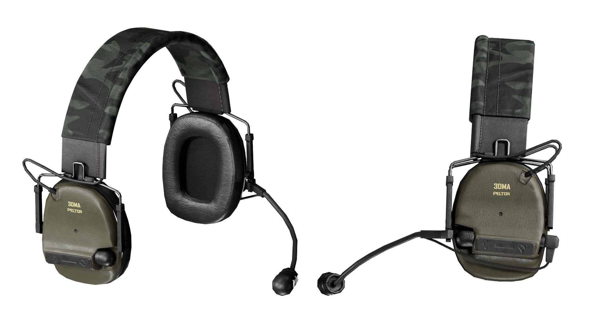 Game-ready 3D model loosely inspired by the 3M Peltor headset series. ID and stitch masks are included for easy retexturing.