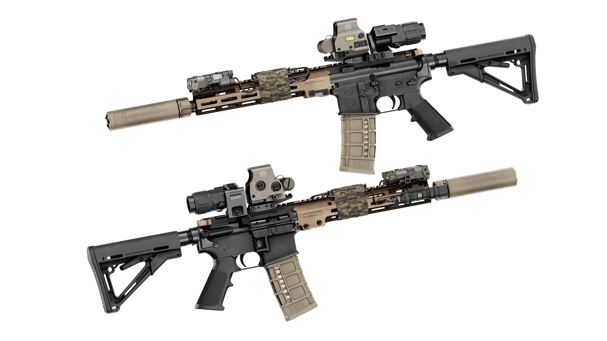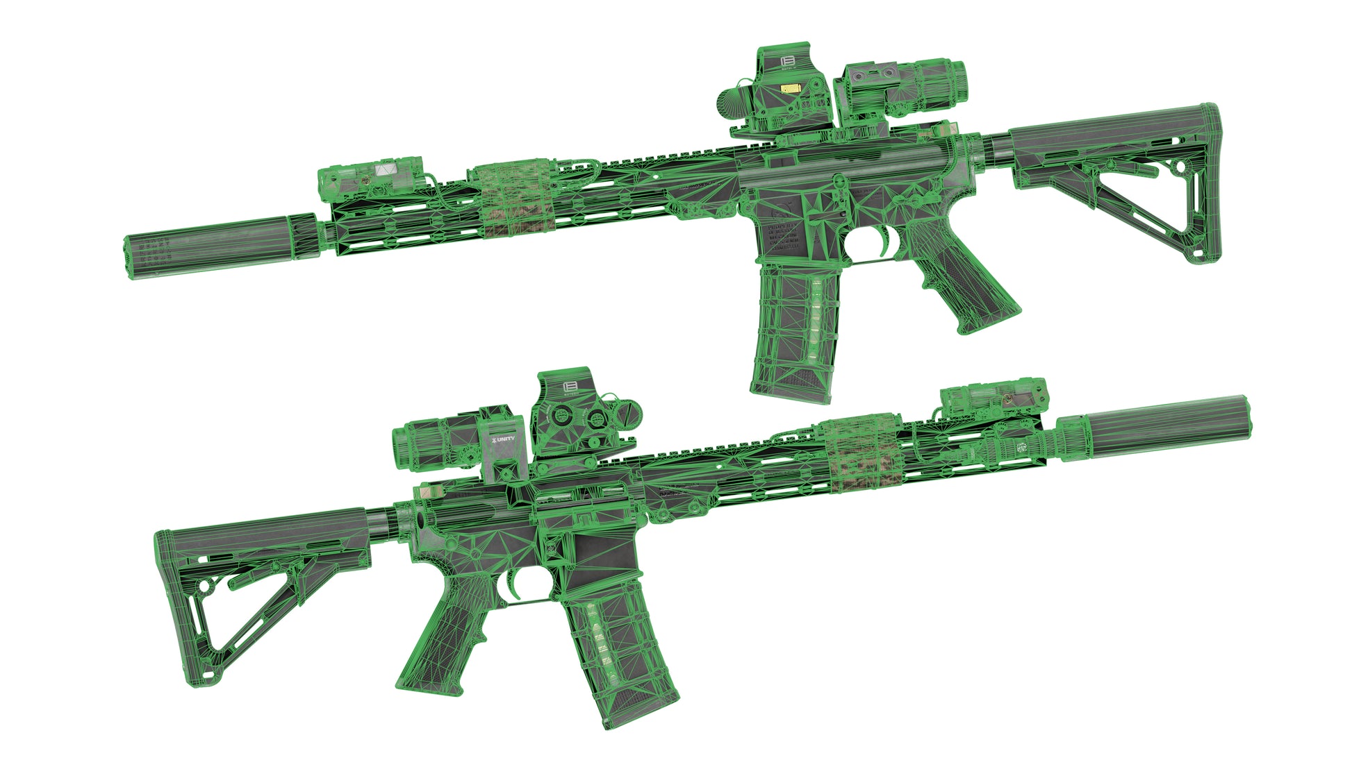 Game-Ready 3D Model inspired by the current standard-issue rifle used by many U.S. Special Operations Units, including the Ranger Battalion, Green Berets, Navy SEALs, and others. We have included both 14.5and an 11.5 barrel. Most components feature multiple texture variants, such as black, tan, and rattle-can camouflage. This model also includes fully modeled internals.