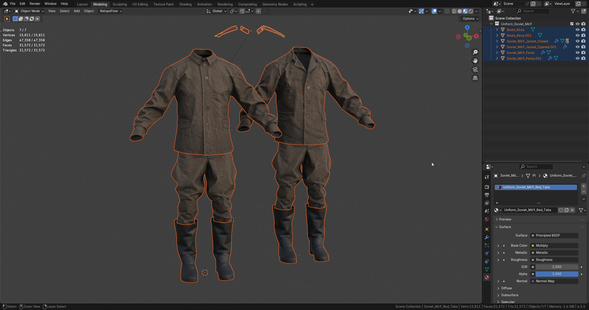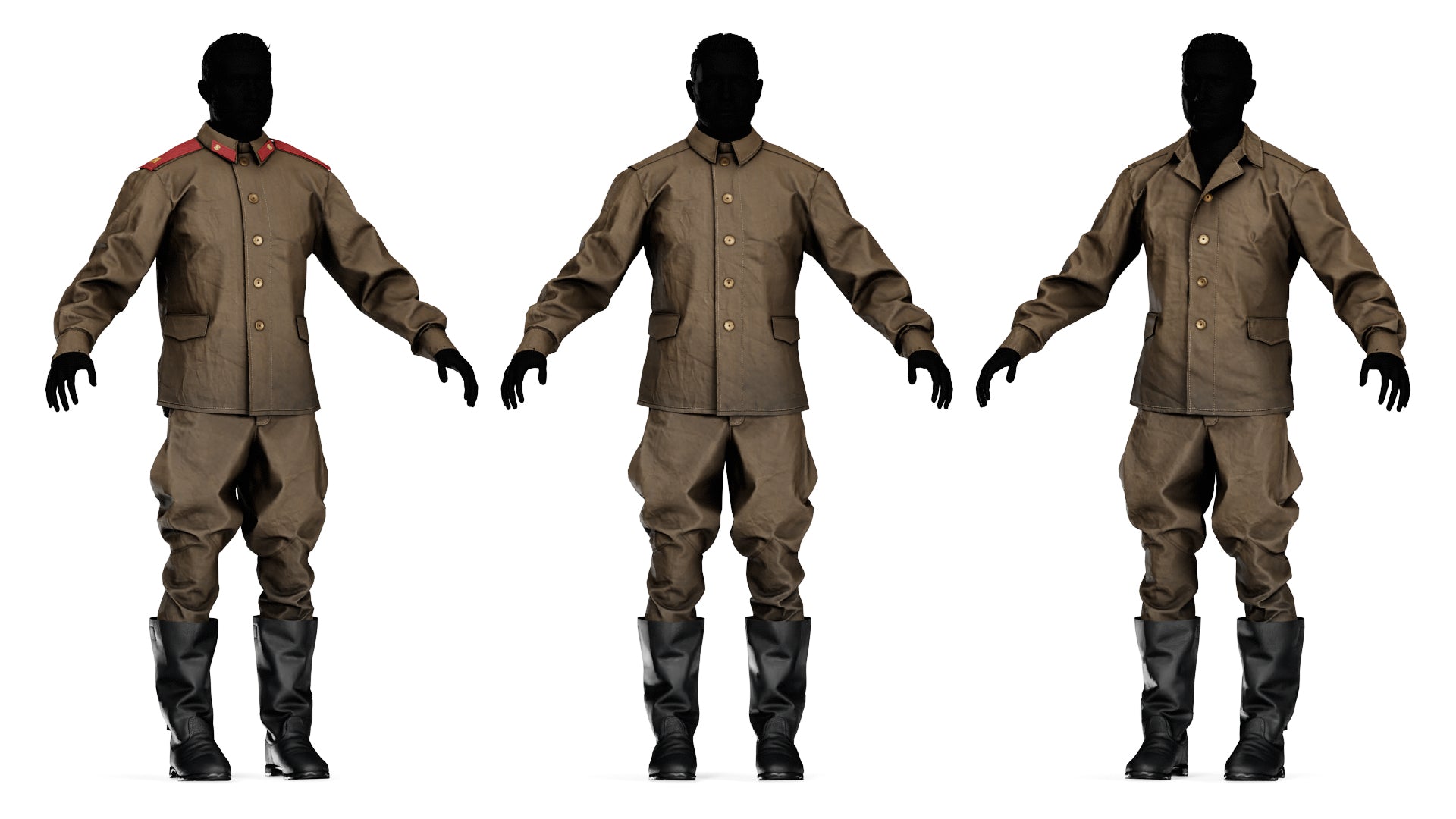 Game-Ready 3D Model inspired by the Soviet Military Infantry Soldier's Uniform M69 (1969). ID and Stitching masks are included for easy retexturing, as well as an open and close neck variant for the jacket, separate rank tabs and Kirza boots.