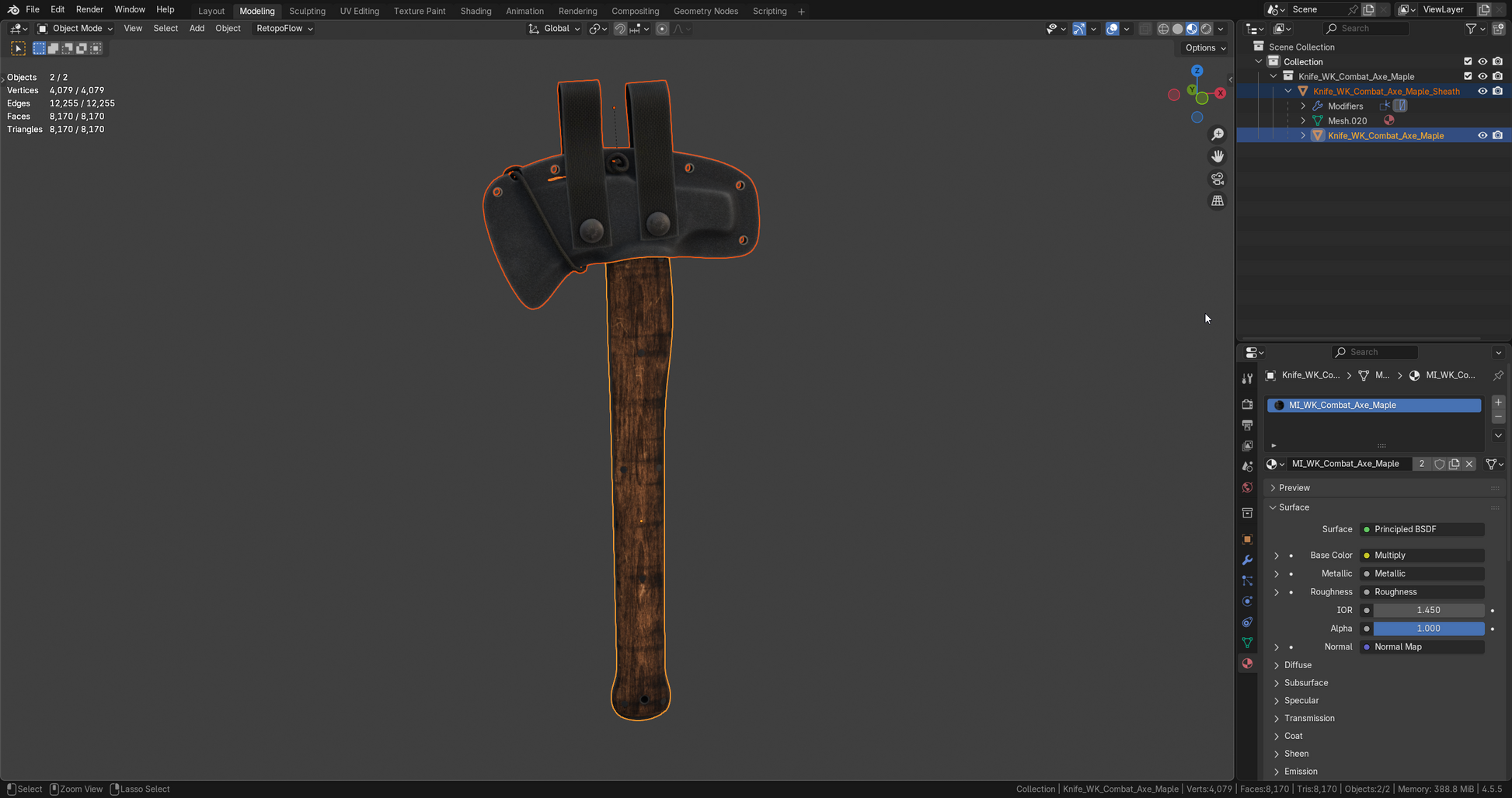 Game-Ready 3D Model inspired on the Winkler Knives Hammer/Combat Axe. Sheath is also included.