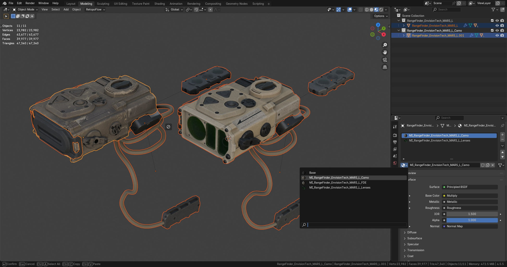 Game-Ready 3D Model inspired by the MARS Laser Range Finder created by Enivsion Technology. FDE and Rattle Can Paint textures are included, as well as the cable and preassure pad. If you want to create your own cables, follow this tutorial: https://www.youtube.com/watch?v=cn0MJE_00kc&t=668s