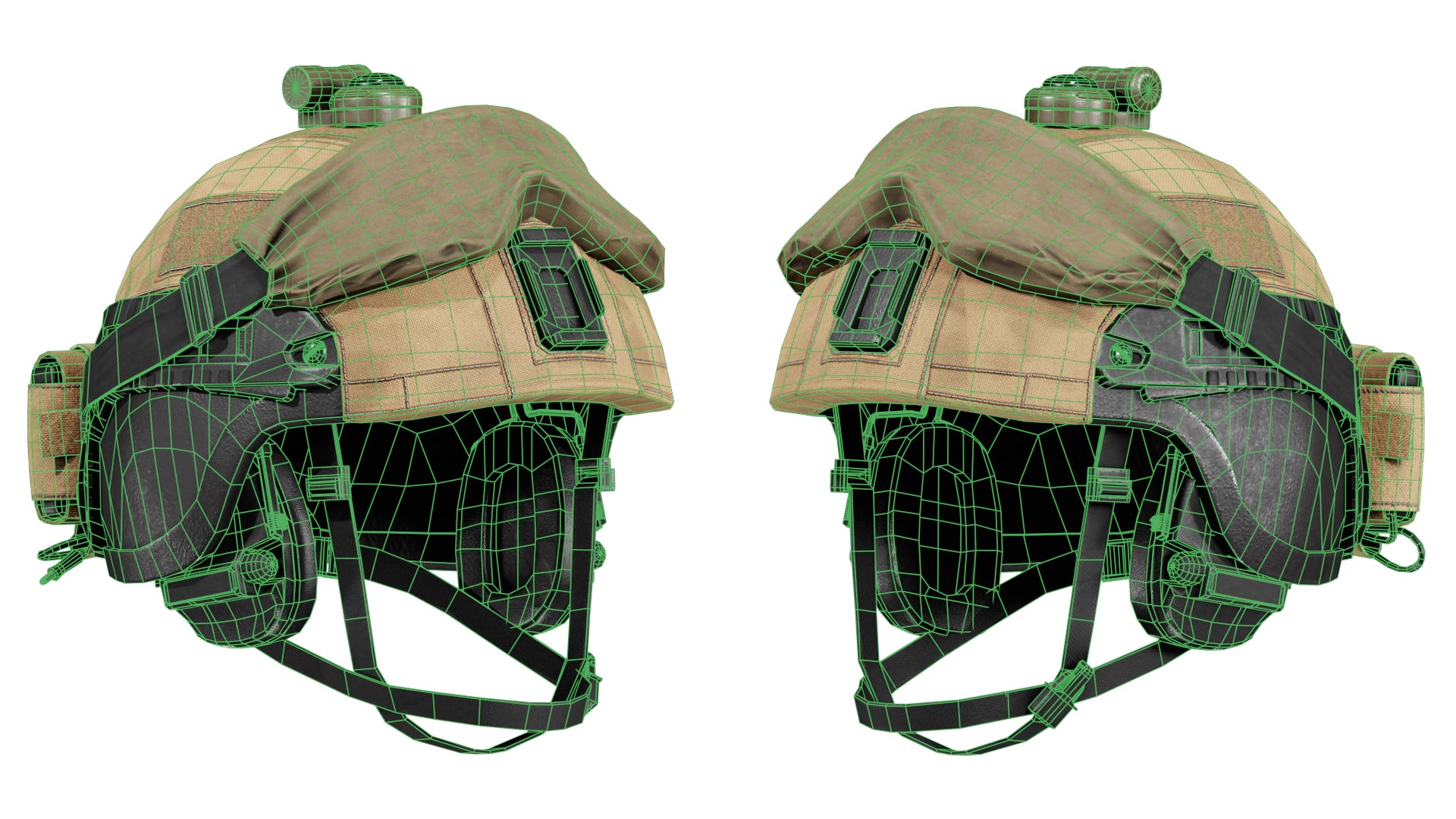Game-Ready 3D Model inspired by the LSHZ High Cut Helmet. OCP (Similar to Multicam), ATACS FG and Coyote textures are included. We also added ID **and **Stitching masks for easy retexturing.